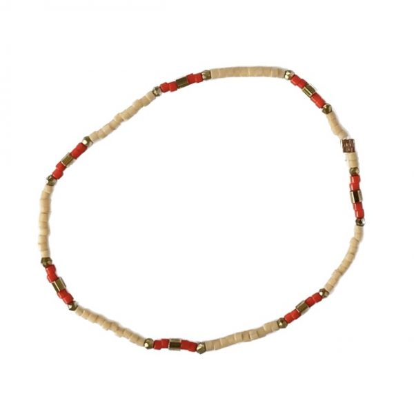 Le solo corail est composé de perles Miyuki et de perles en acier inoxydable. Il est assemblé sur fil élastique très résistant dans nos ateliers ligériens.